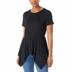 DG2 by Diane Gilman Space-Dyed Jersey Ruched Peplum Tee