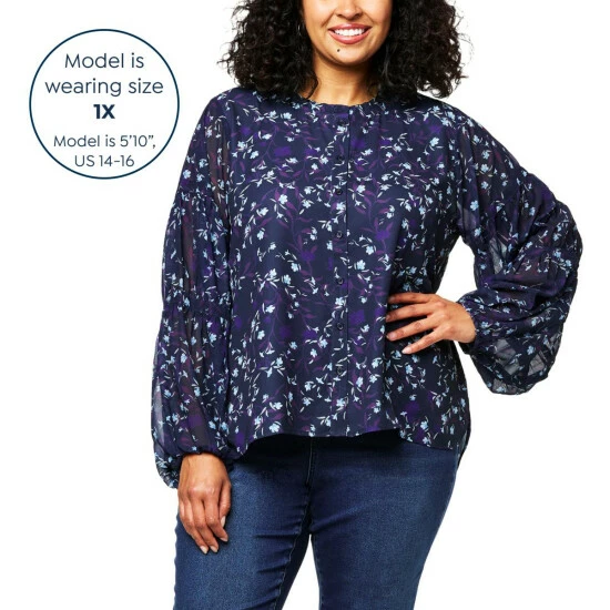 Not too little, not too much. Just the perfect amount of puff in this peasant top from Diane Gilman updated with tiered sleeves and a ruffled neck trim.