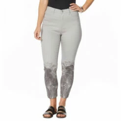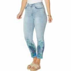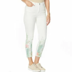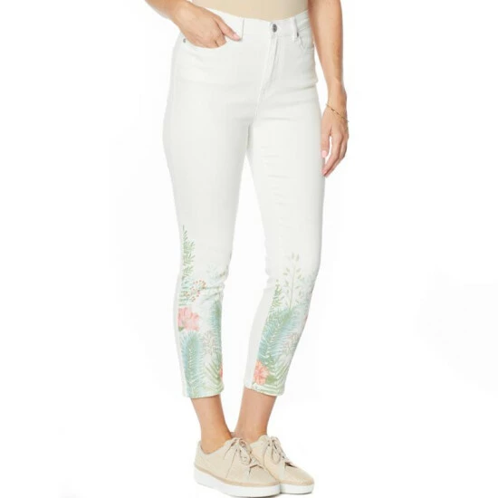 DG2 by Diane Gilman Tropical-Print Hem Skinny Crop Jean