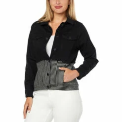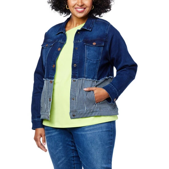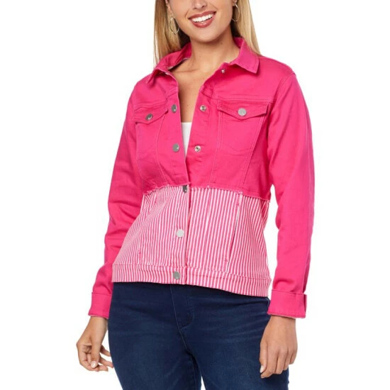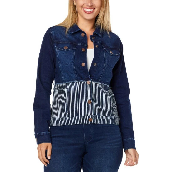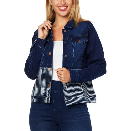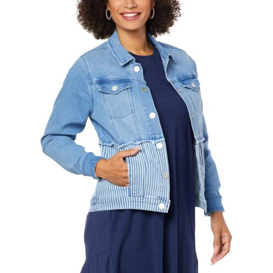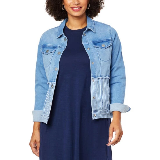DG2 by Diane GilmanVirtual Stretch 2-Tone Fray Denim Jacket