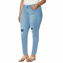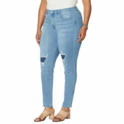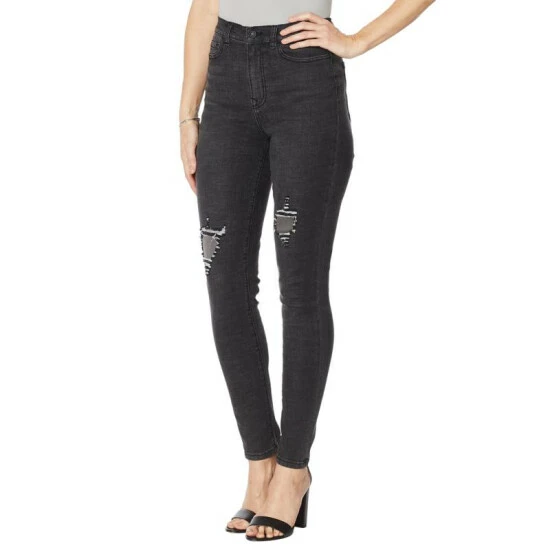 You have your always-in-styleboot-cut, your classic straight and your vintage-inspiredflares, and then there’s the skinny jean. Who knew one style could literally flatter any and every body shape? Diane has taken it one very fashionable step further with her virtual crosshatch denim fabric, destructed knee patchesand ultra-skinny legs.