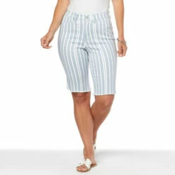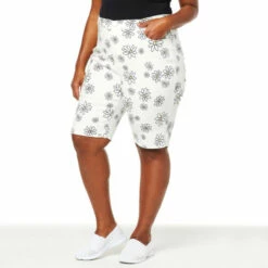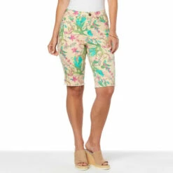 Start building a runway-ready, warm-weather wardrobe with these printed, virtual stretch denimBermuda shorts from Diane Gilman. Any day-to-night, spring-to-summer look starts with slipping into these stylishly svelte and versatile bottoms.